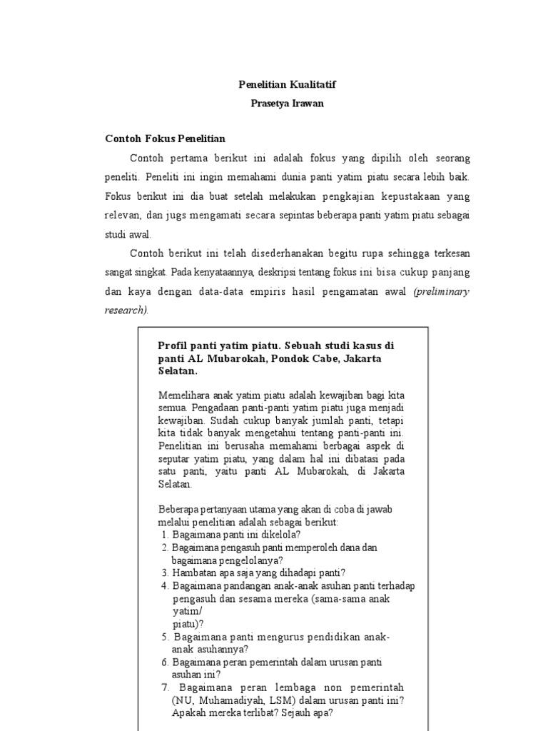 Pendekatan penelitian merupakan merupakan cara berpikir yang diadopsi peneliti tentang bagaimana desain riset dibuat dan bagaimana penelitian dilakukan. Penelitian kualitatif merupakan suatu strategi inquiri yang menekankan pencarian makna, pengertian, konsep, karakteristik, gejala, simbol maupun deskripsi tentang suatu fenomena; Jan 16, 2020 · contoh proposal penelitian tesis proposal penelitian kuantitatif dan kualitatif. Nov 02, 2016 · 1 contoh analisis dan interpretasi data pada laporan penelitian kualitatif (disusun dalam rangka memenuhi tugas mata kuliah metodologi penelitian kualitatif di universitas negeri makassar) muh. Proposal penelitian kuantitatir merupakan proposal penelitian dengan pendekatan kuantitatif yang pada umumnya menitikberatkan pada pengukuran secara objektif/ilmiah tentang suatu fenomena sosial.